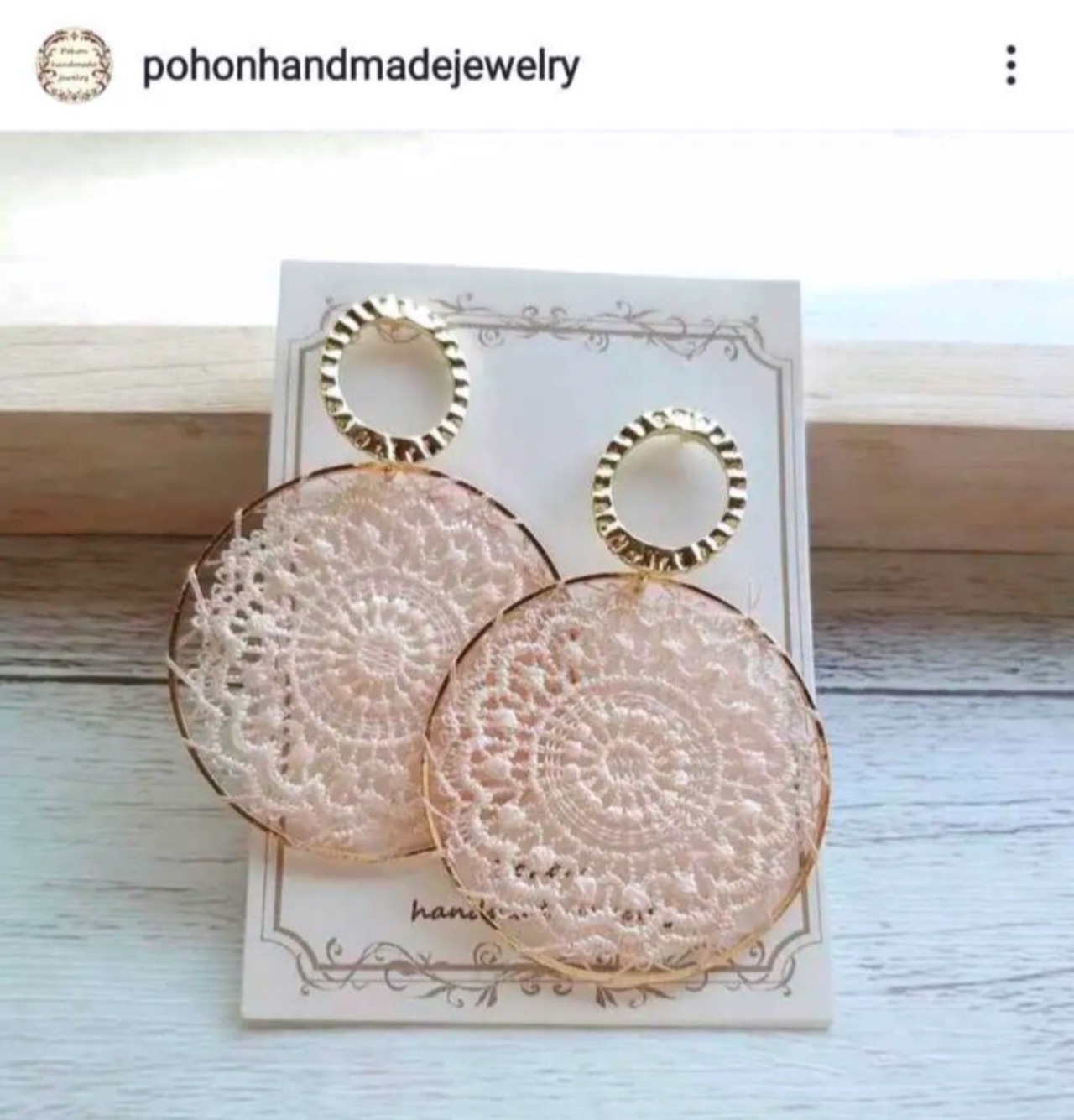 【値下げ在庫限り】ゴールド枠にレース パーツ 1個売り 50mm