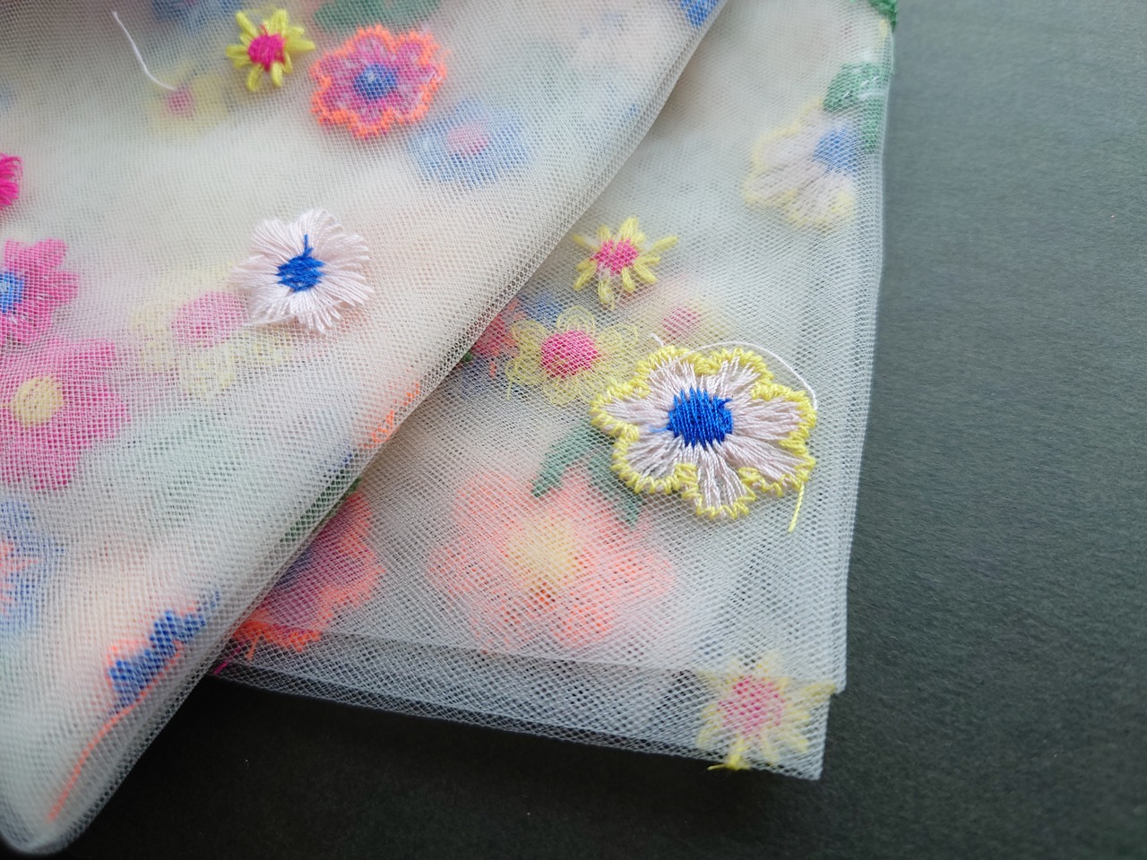 刺繍 フラワー チュール 約150cm幅 約50cm切り売り