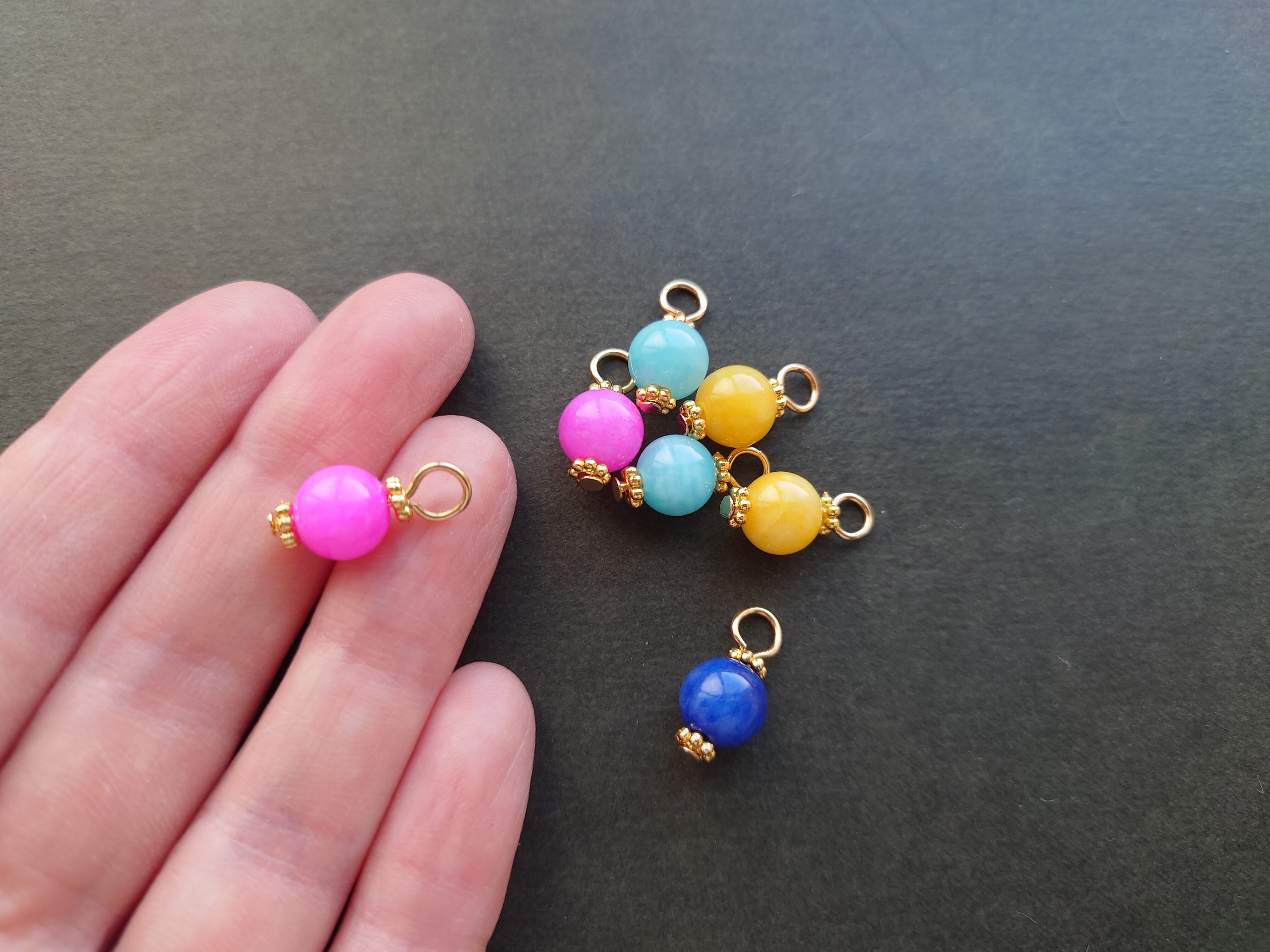【値下げ在庫限り】染め ジェイド 翡翠 ラウンド チャーム ミックスカラー 2個