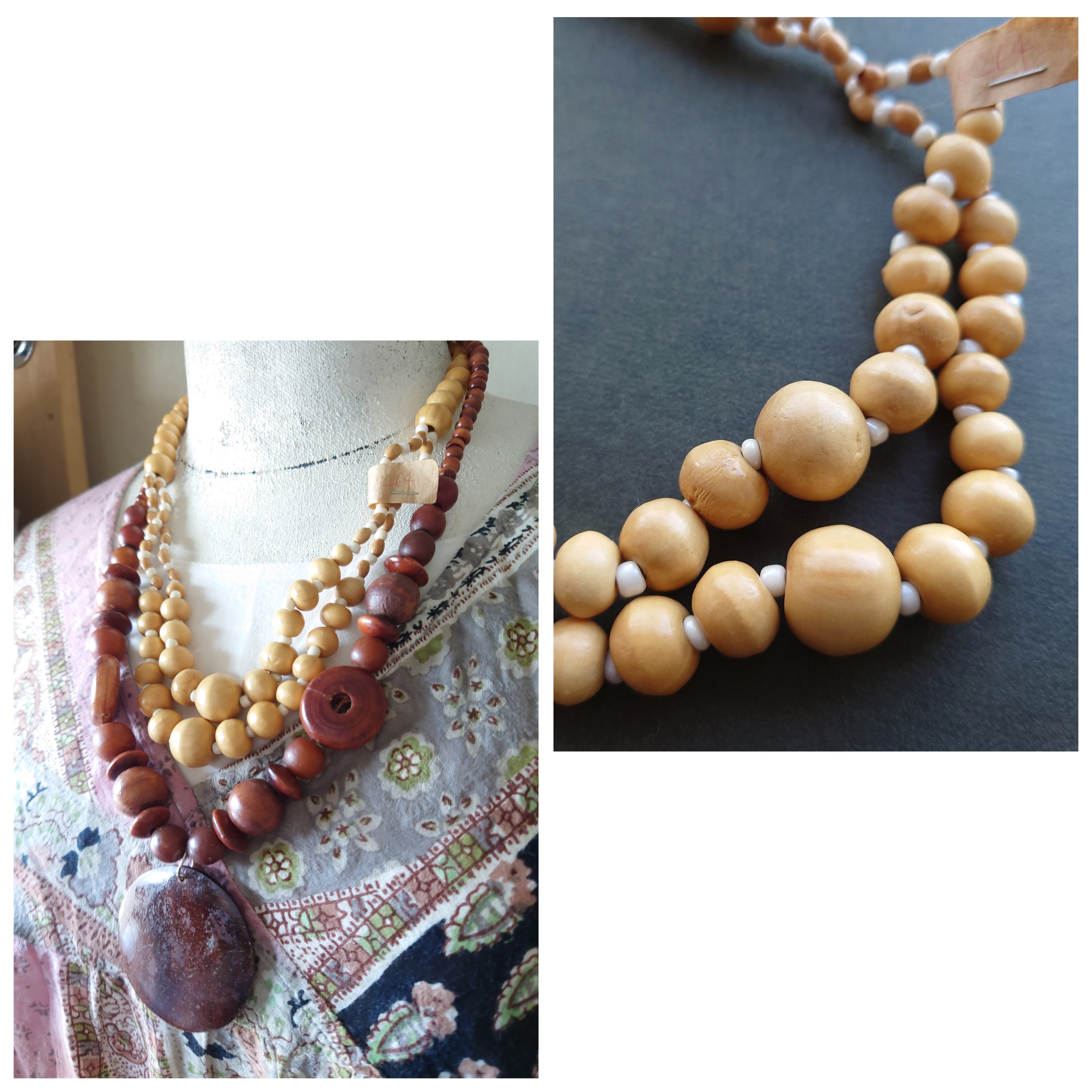 半額以下セール!ウッドビーズ 2連 ネックレス ナチュラル / PohonhandmadeJewelry 1個