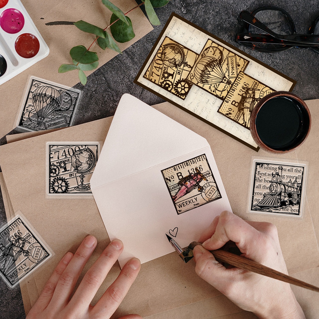 3.クリアスタンプにインクを付けて紙に押します。