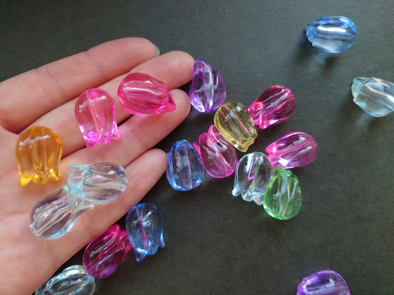 フラワー チューリップ ビーズ クリア ミックスカラー 2個