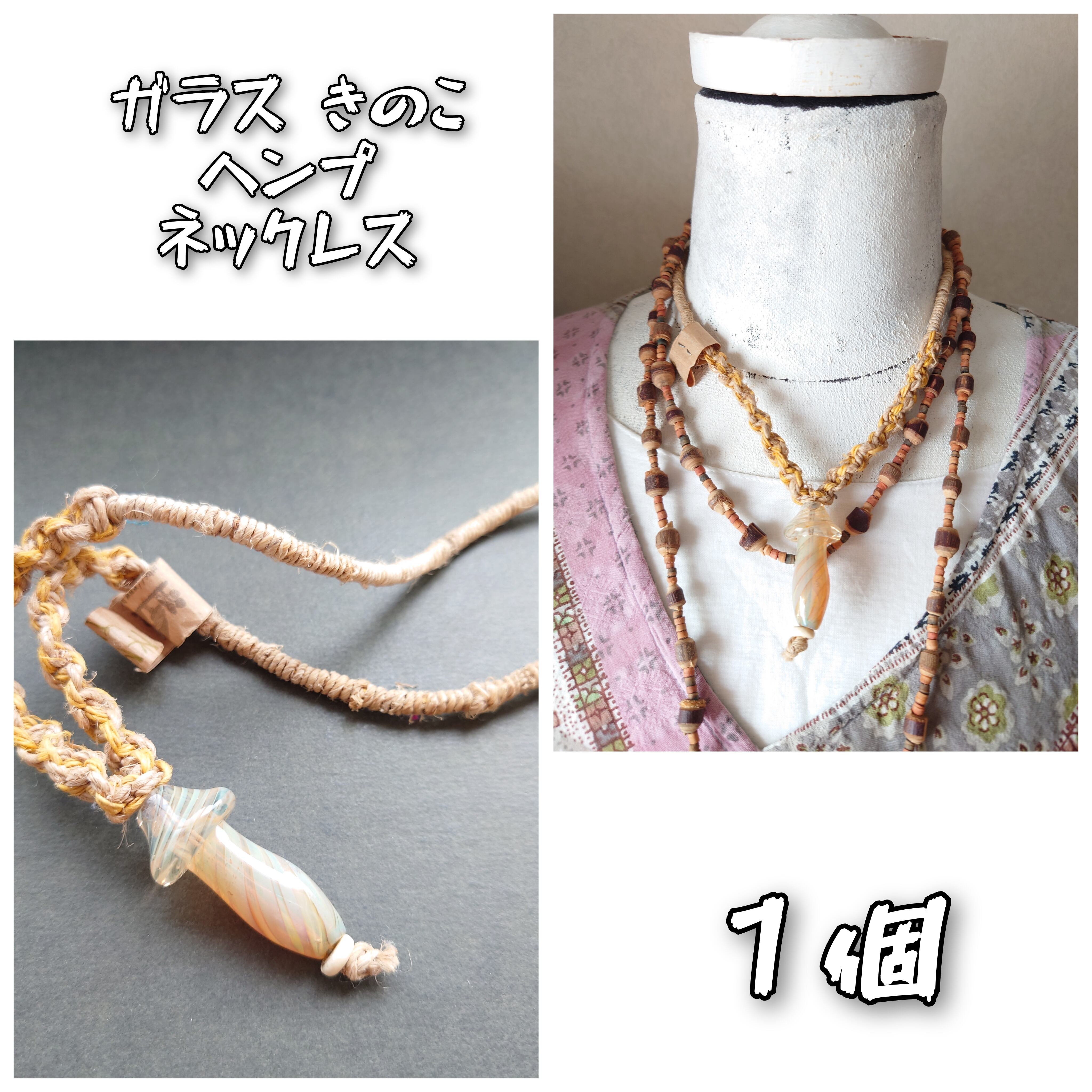 【値下げ在庫限り】ガラス きのこ ヘンプ ネックレス 1個
