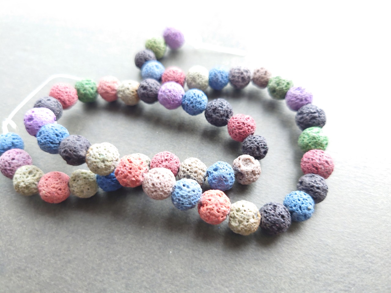 ラバストーン 8mm ラウンド ビーズ 落ち着きカラー ミックスカラー 6個