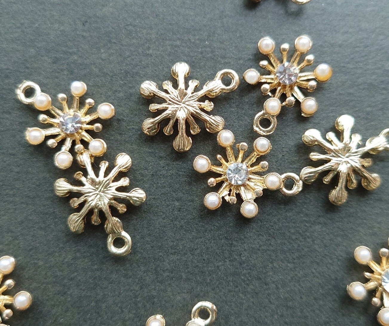 雪の結晶 チャーム ラインストーン パール調 合金 プラスチック 2個