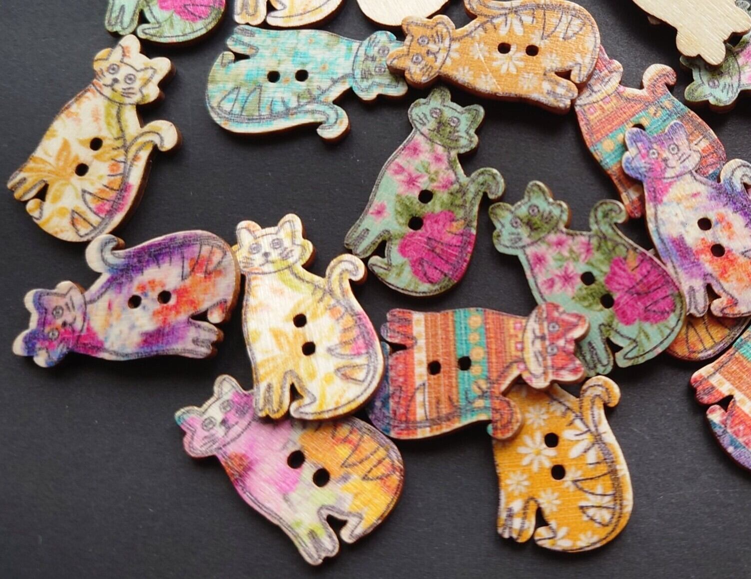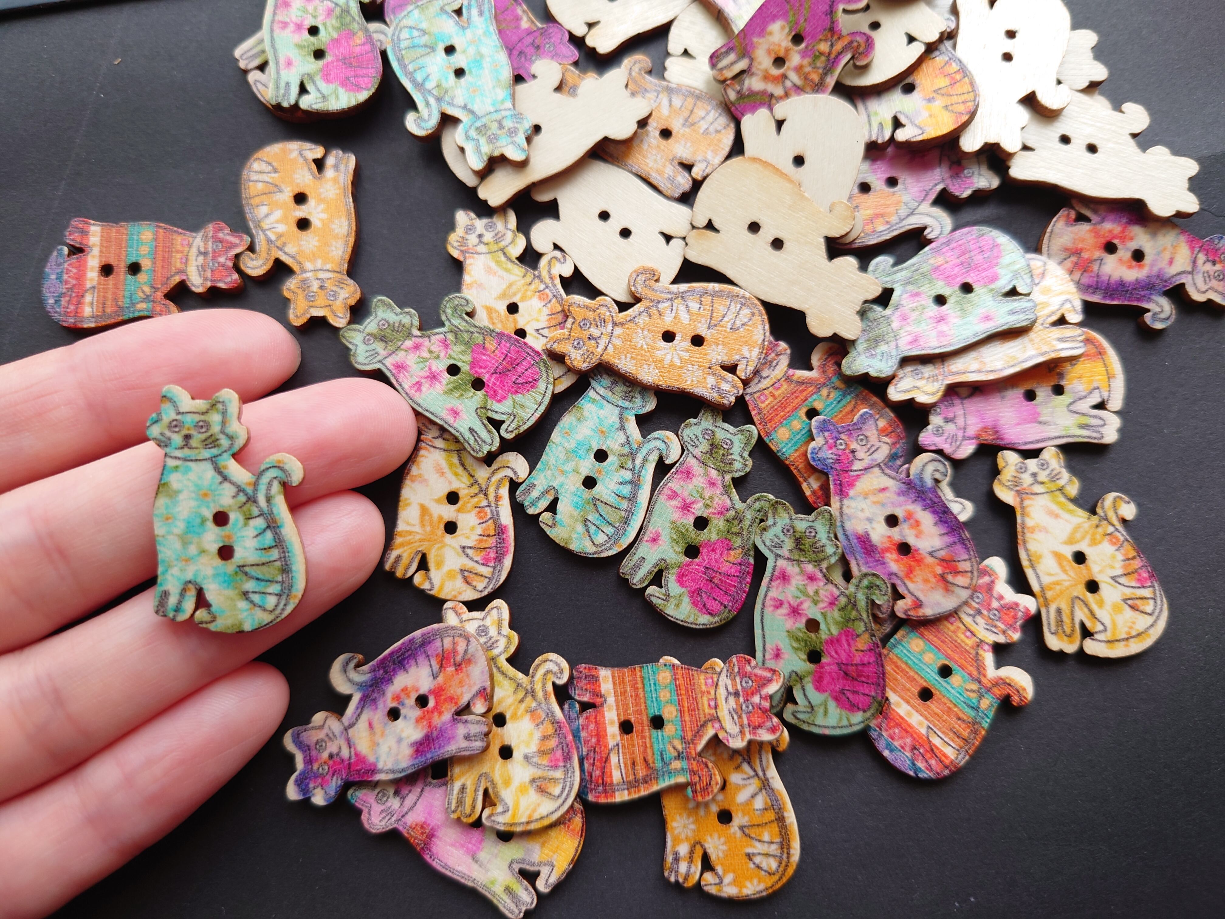木製 ウッド ボタン 猫 デザインミックス 5個