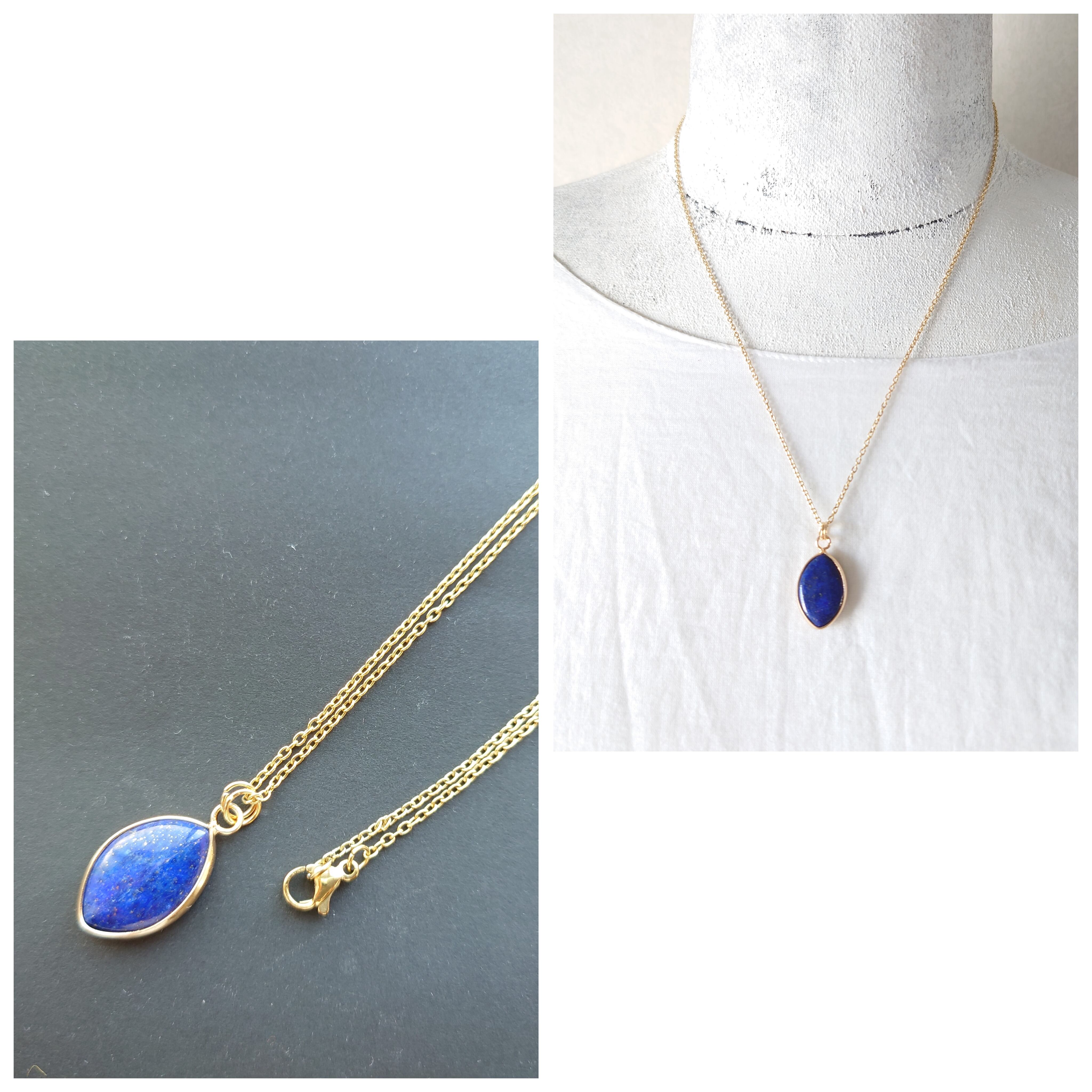 【値下げ在庫限り】 ラピスラズリ ナツメ ネックレス ステンレスチェーン 1個