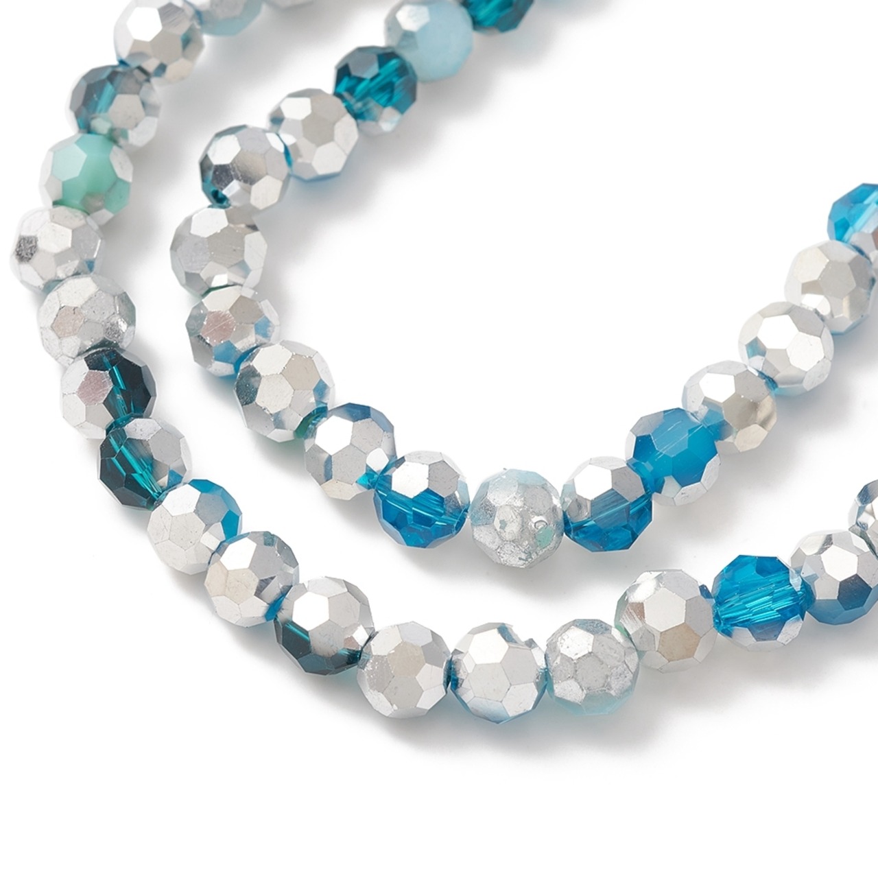 ハーフ シルバー色 多面カット 夏カラー ビーズ 6x5mm ミディアムターコイズ 10個