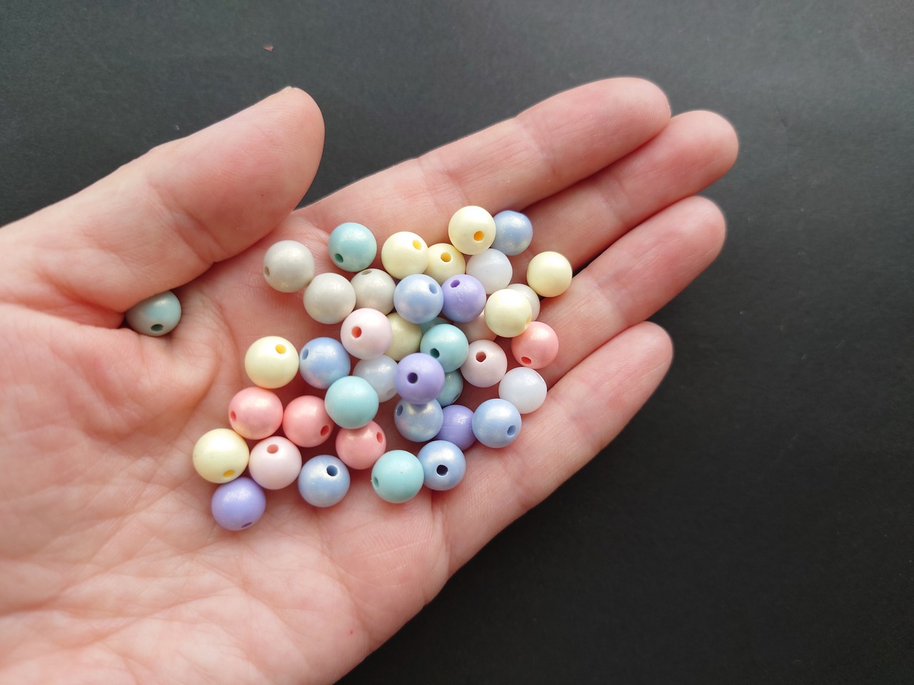 【値下げ在庫限り】ラウンド ビーズ ラバー加工 パステルカラー 8mm ミックスカラー 20個