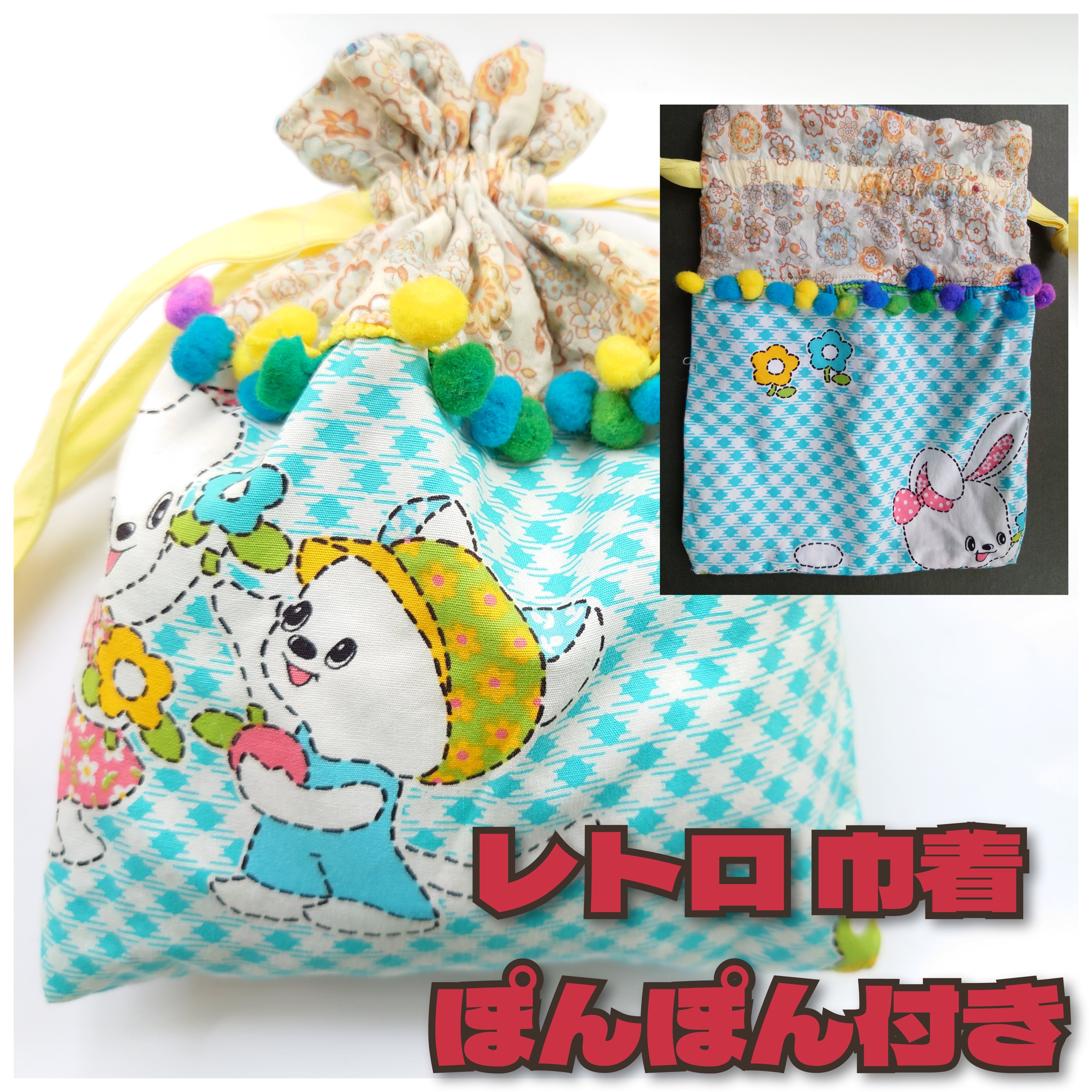 【値下げ在庫限り】レトロ 巾着 ぽんぽん付き