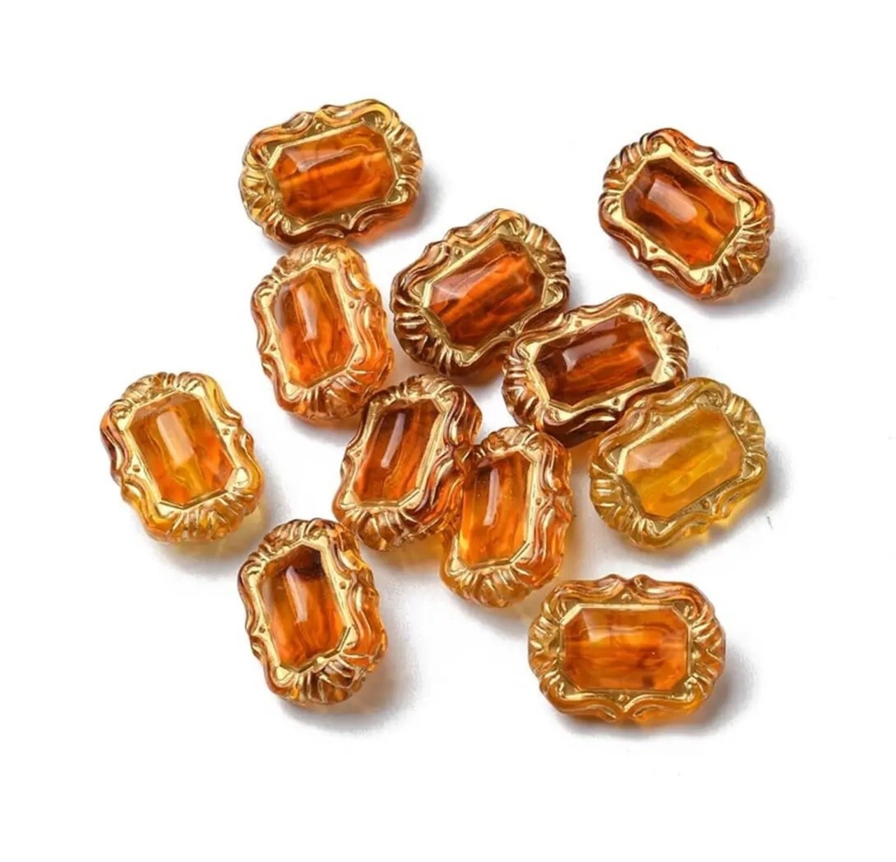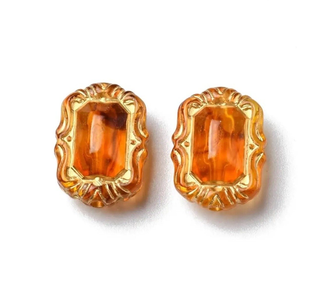 【値下げ在庫限り】アンティーク調 ゴールドライン アクリル ビーズ 長方形 レッドブラウン 2個