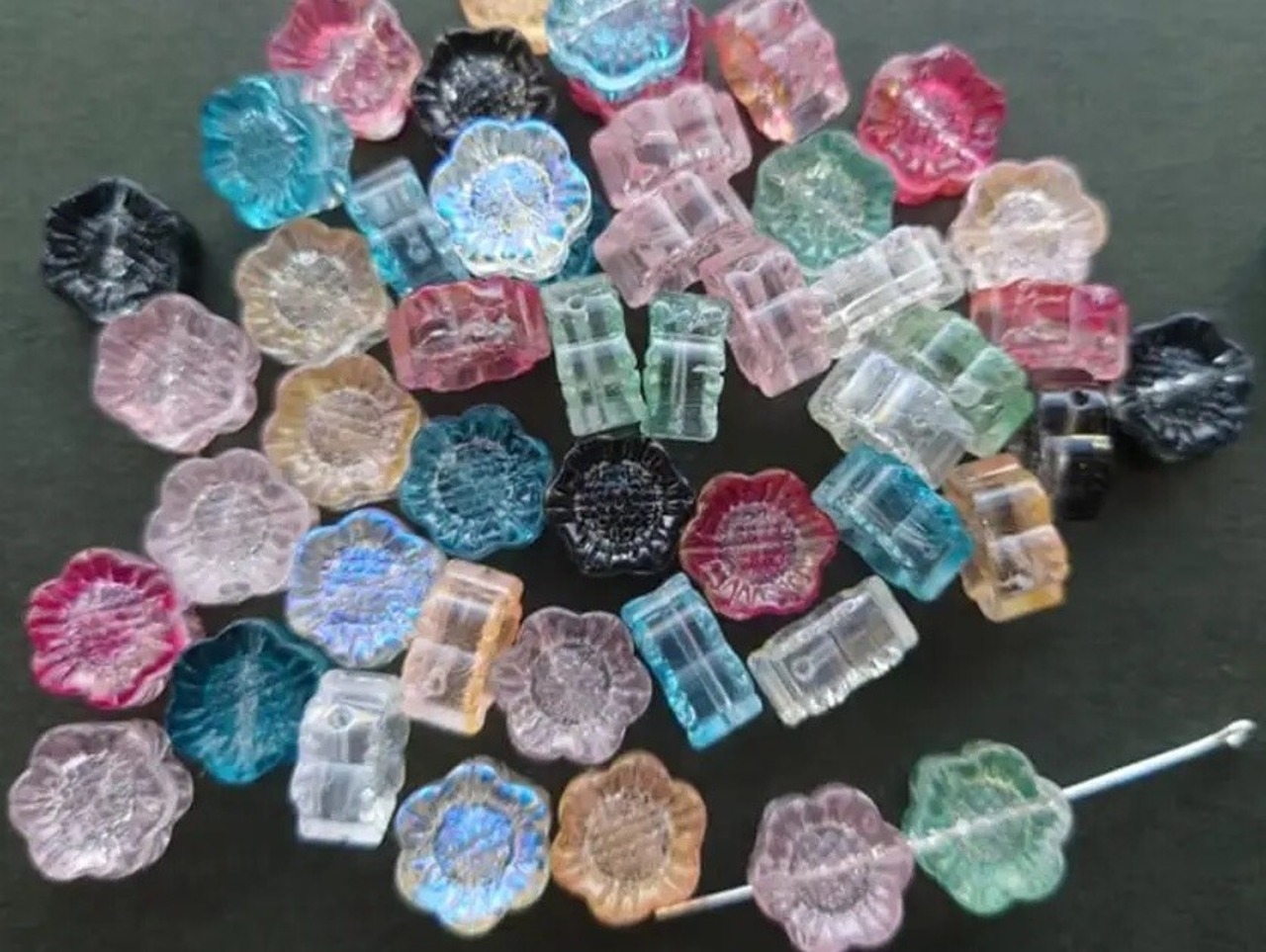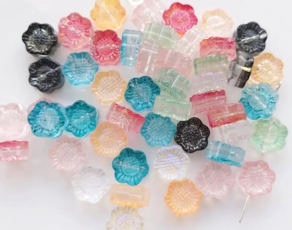 【値下げ在庫限り】ガラス フラワー ビーズ アンティーク調 ミックスカラー 2個