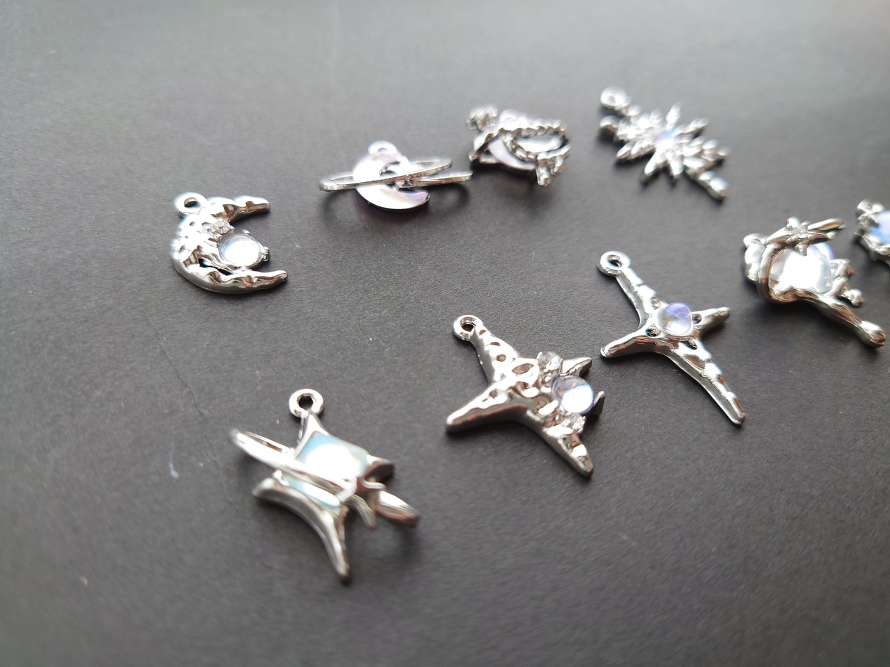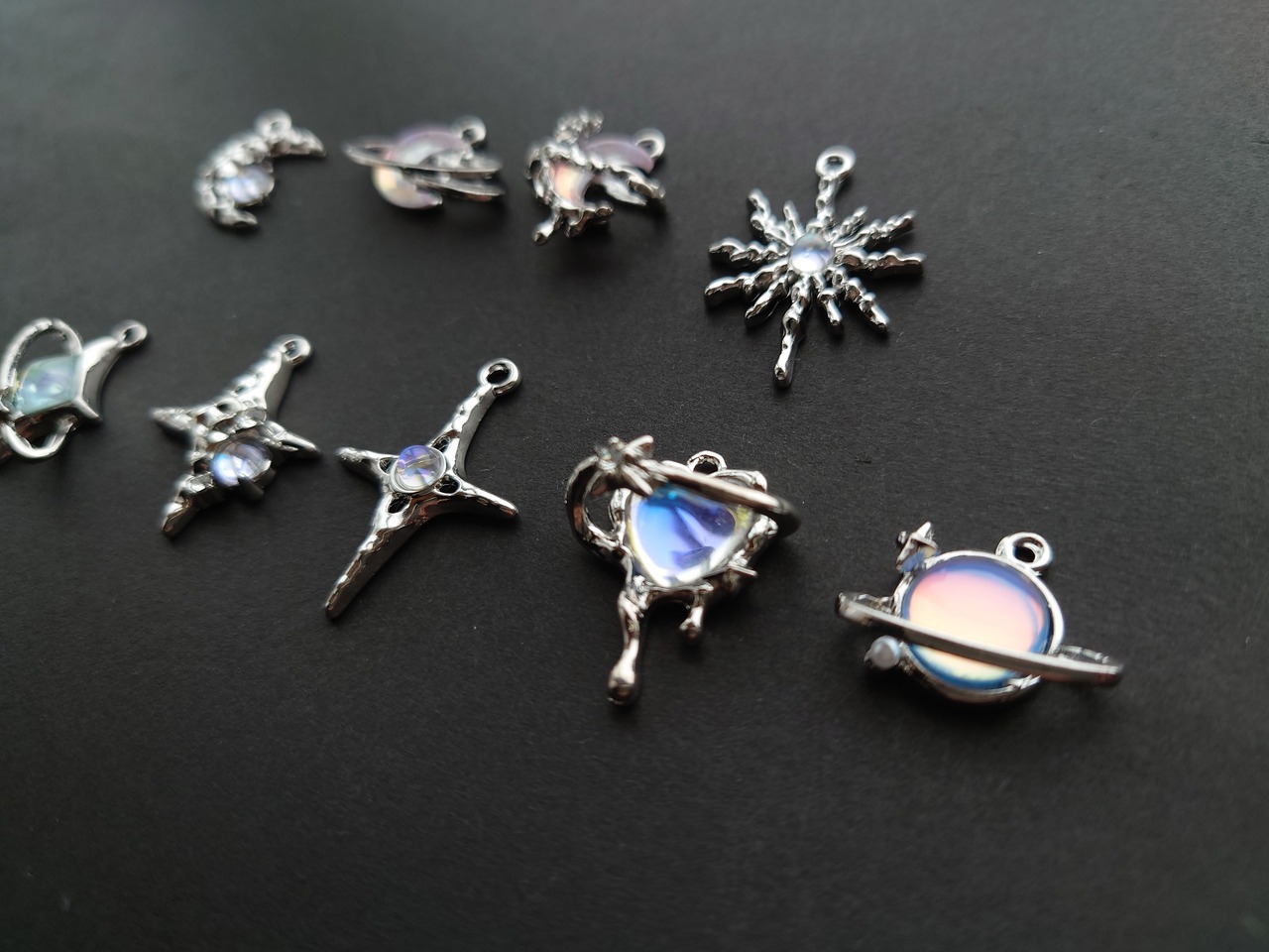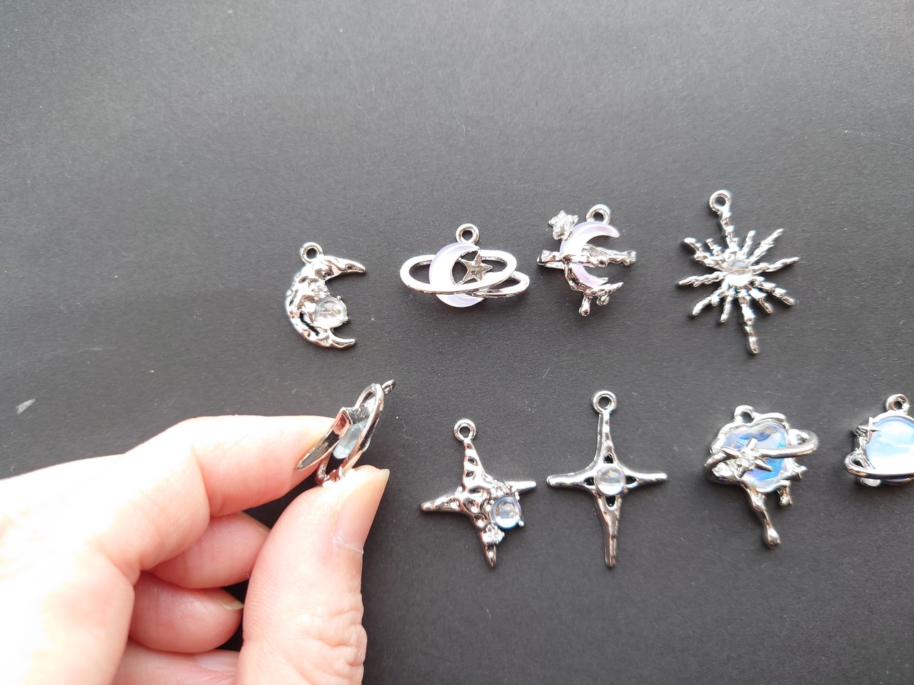 月 太陽 土星 キラリ オパール風 合金 チャーム 2個