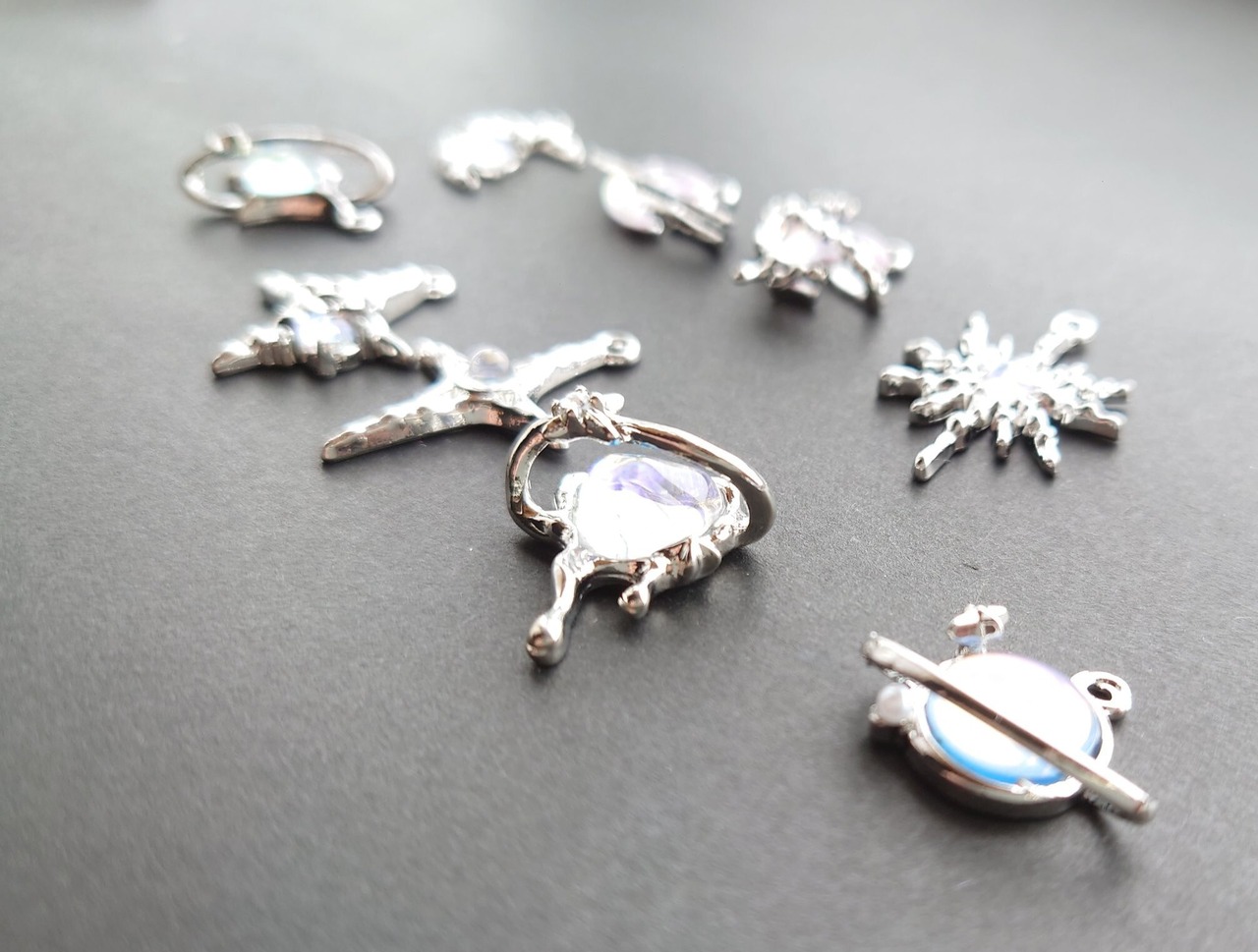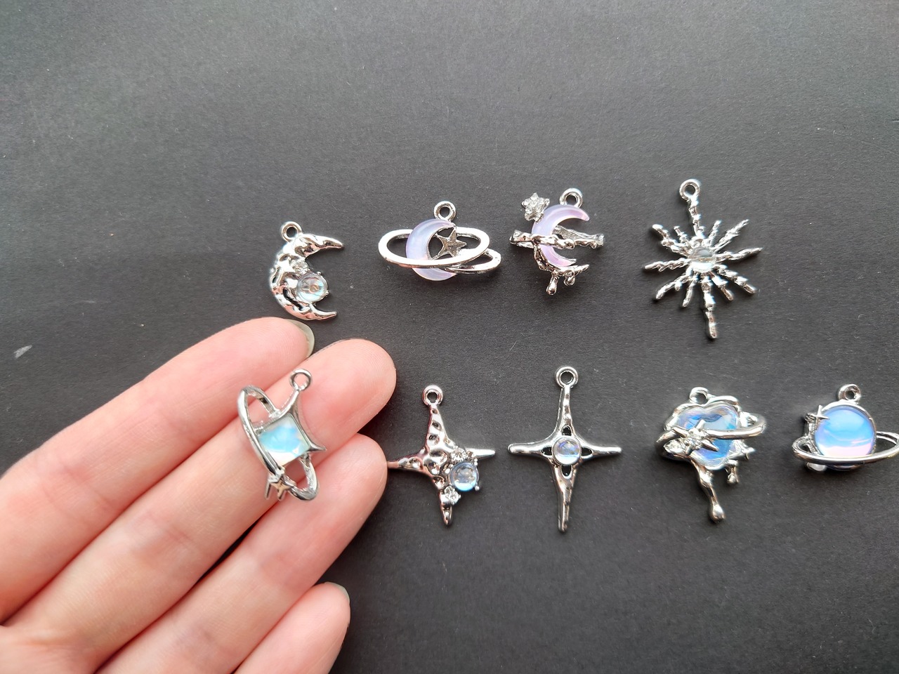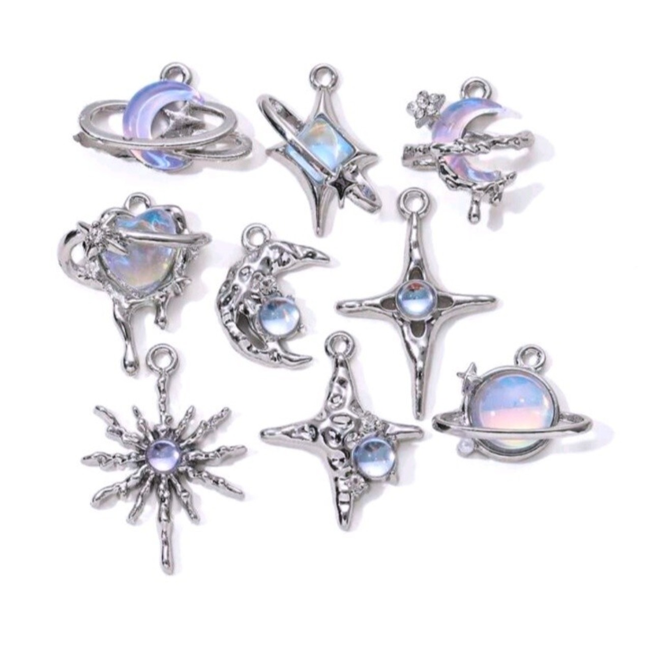 月 太陽 土星 キラリ オパール風 合金 チャーム 2個