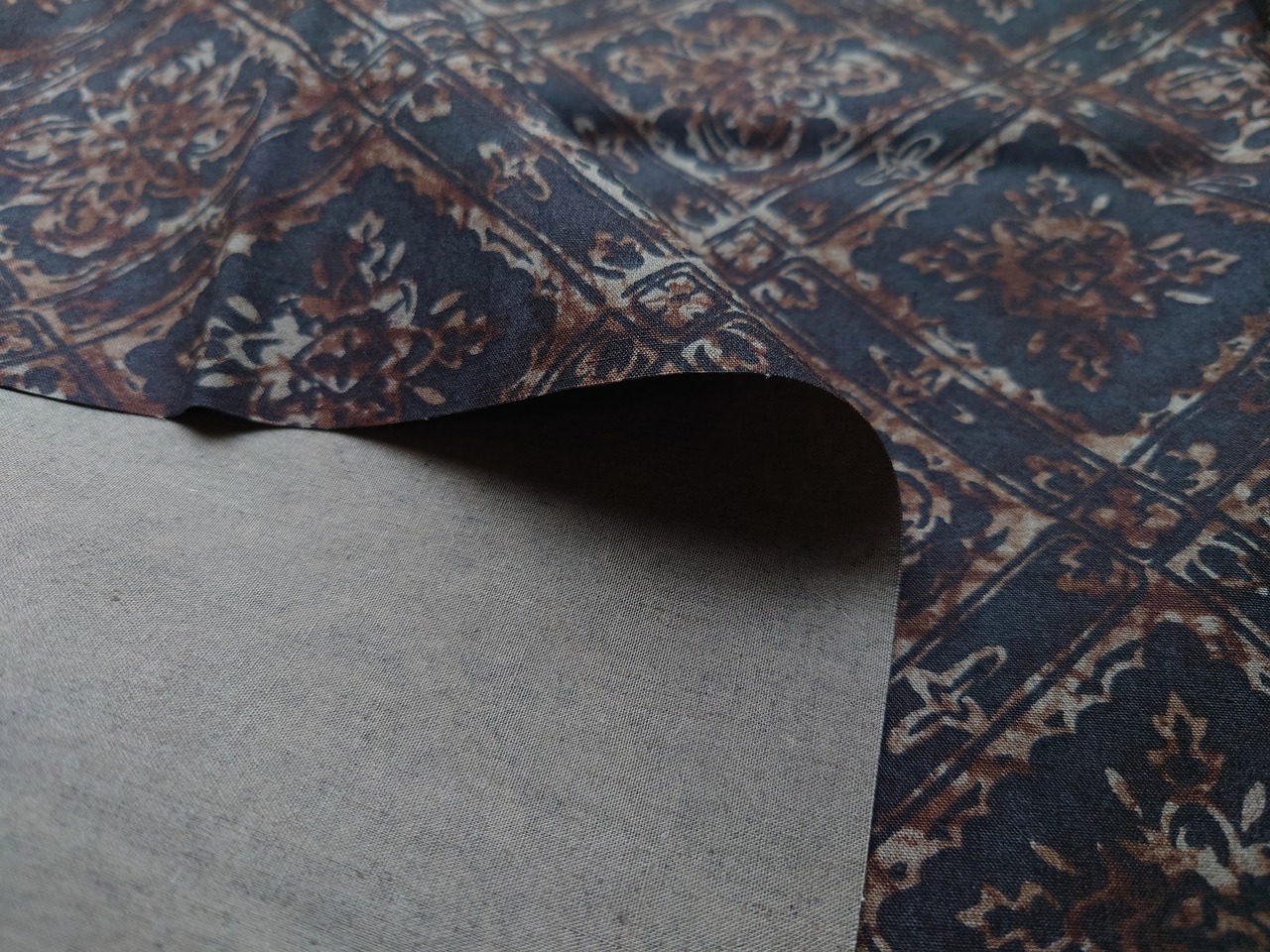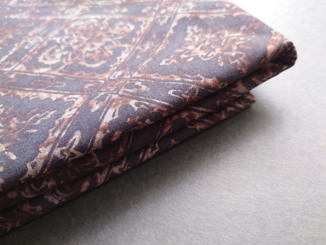 【値下げ在庫限り】コットン 生地 ダークブラウン 模様 約110cm幅 約50cm切り売り