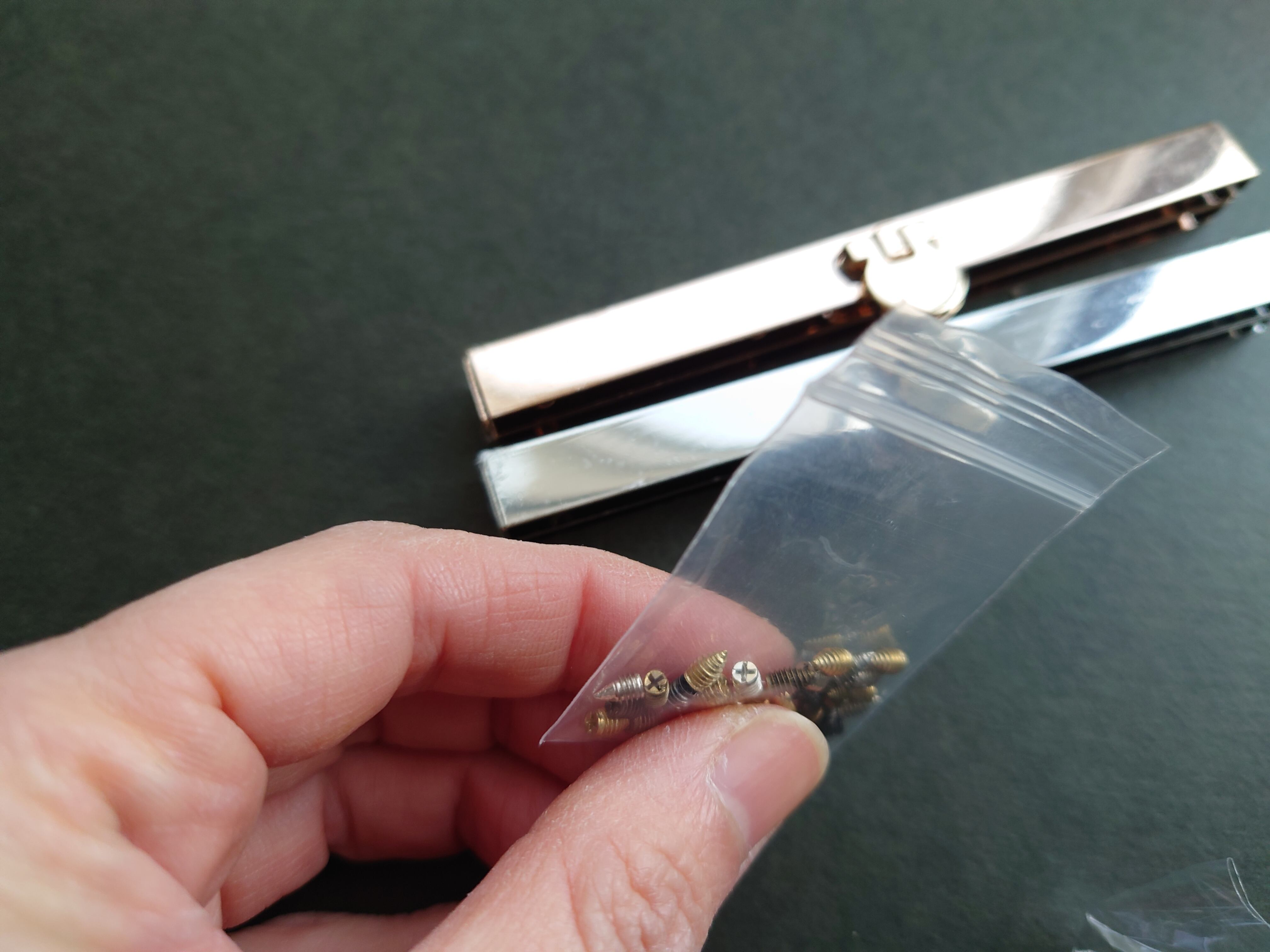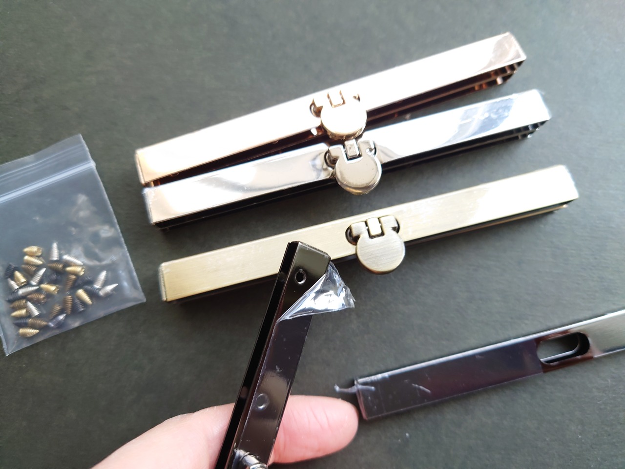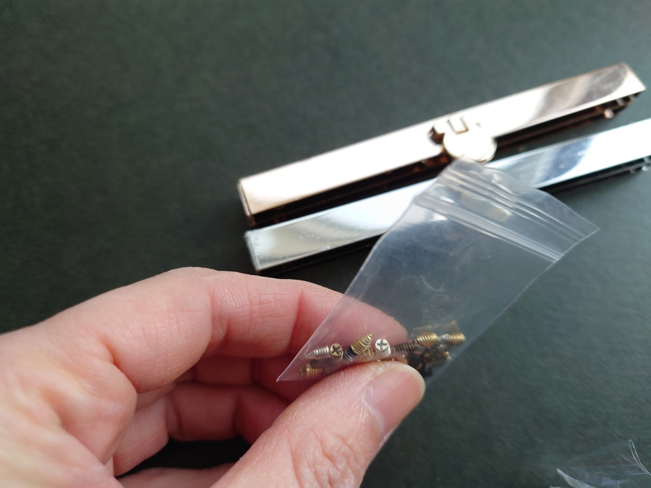 内側からネジを差し込み、生地と口金を留めるタイプです。