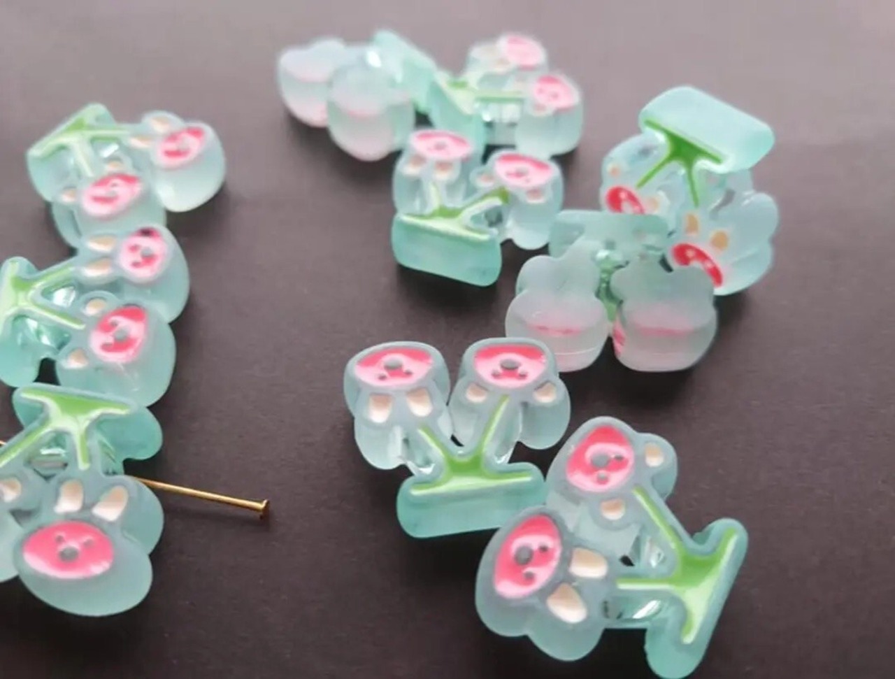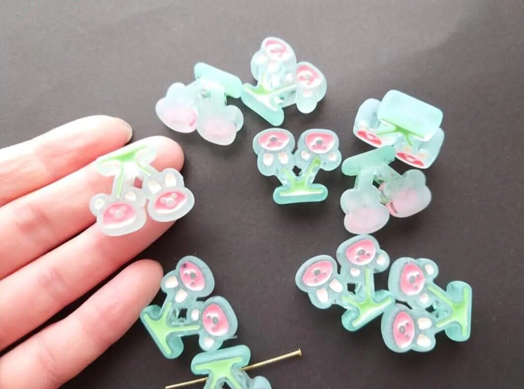 【値下げ在庫限り】クマ と ウサギ の なかよし サクランボ ビーズ 横穴 大穴 穴3mm 2個