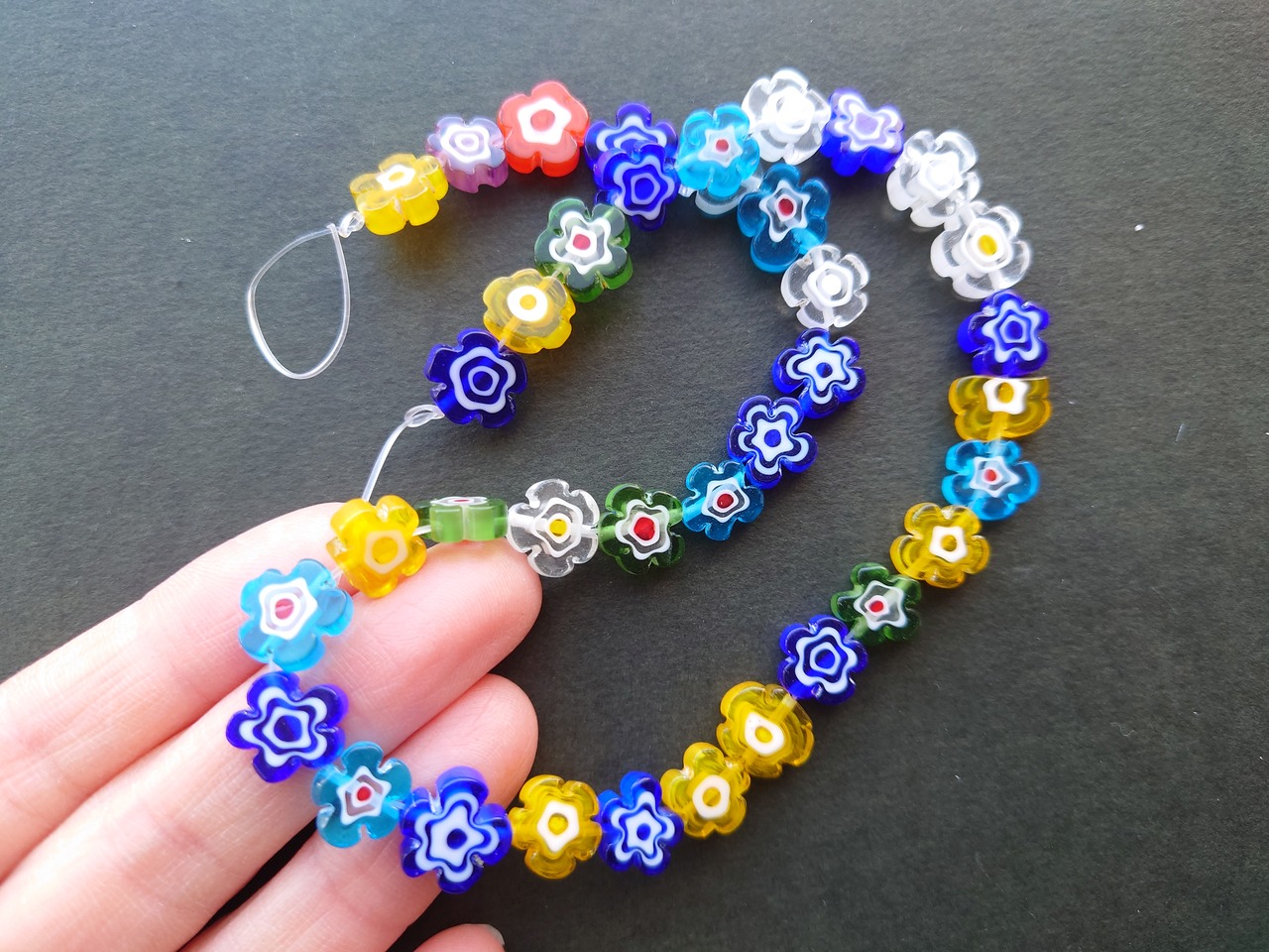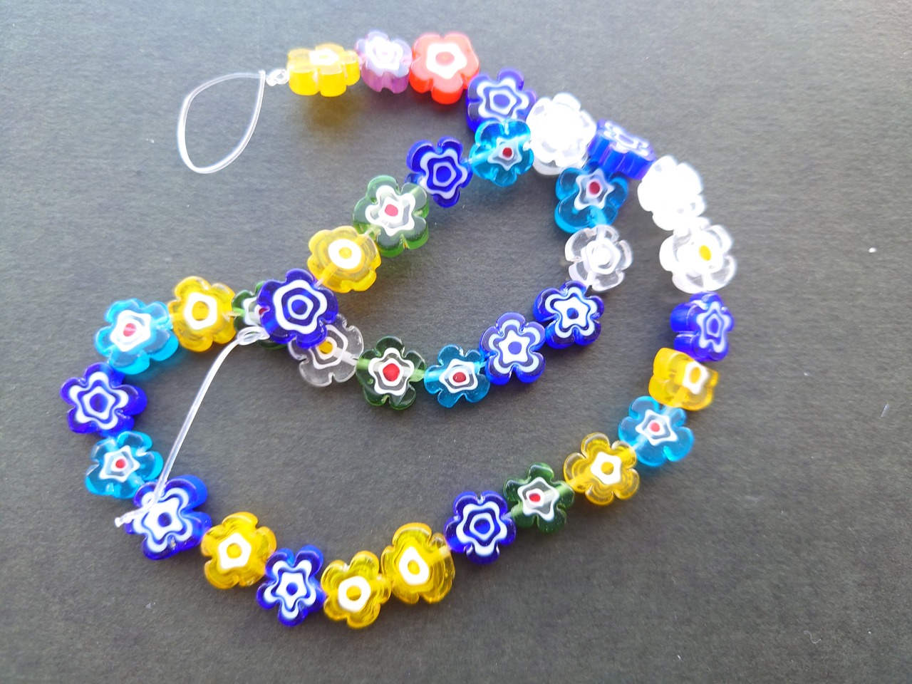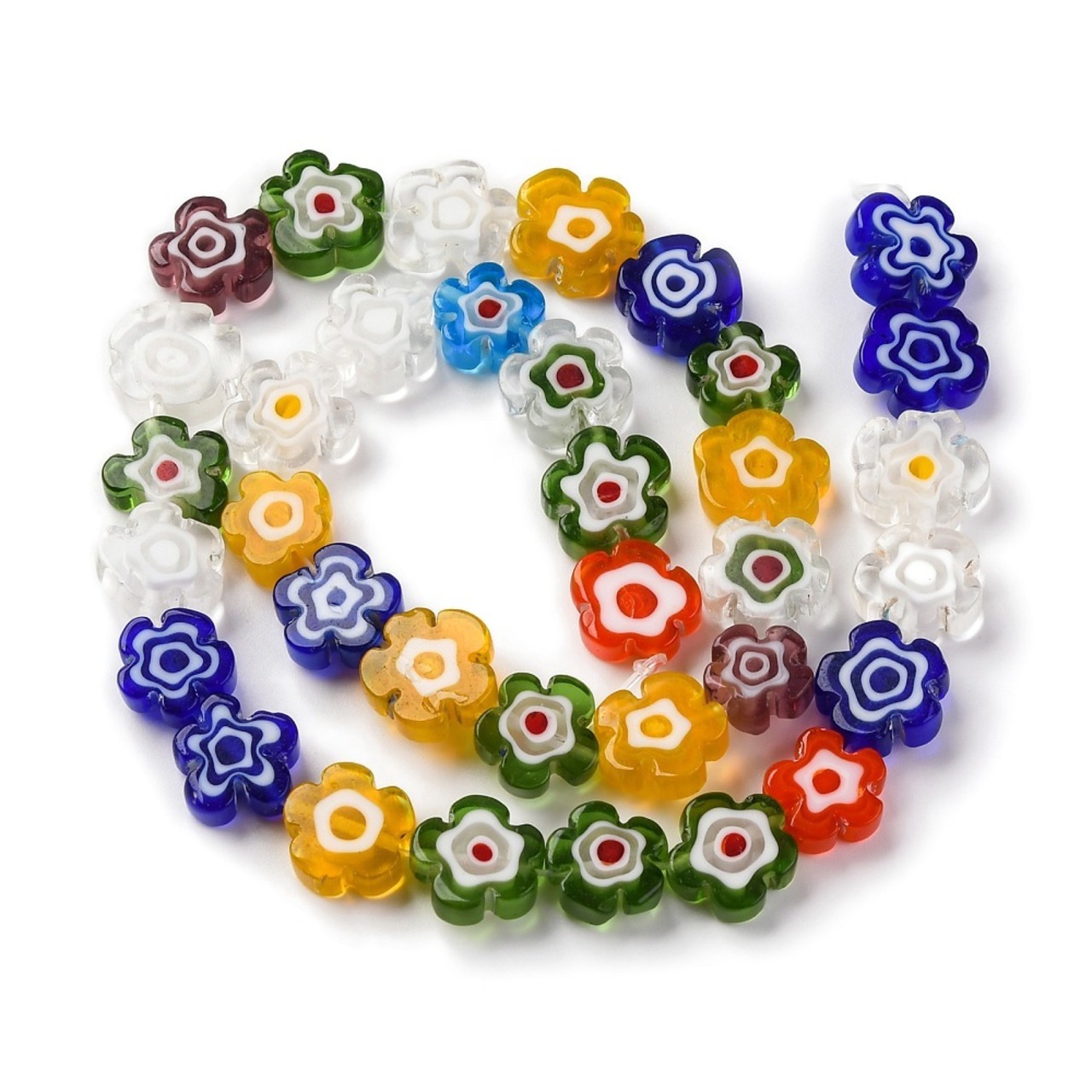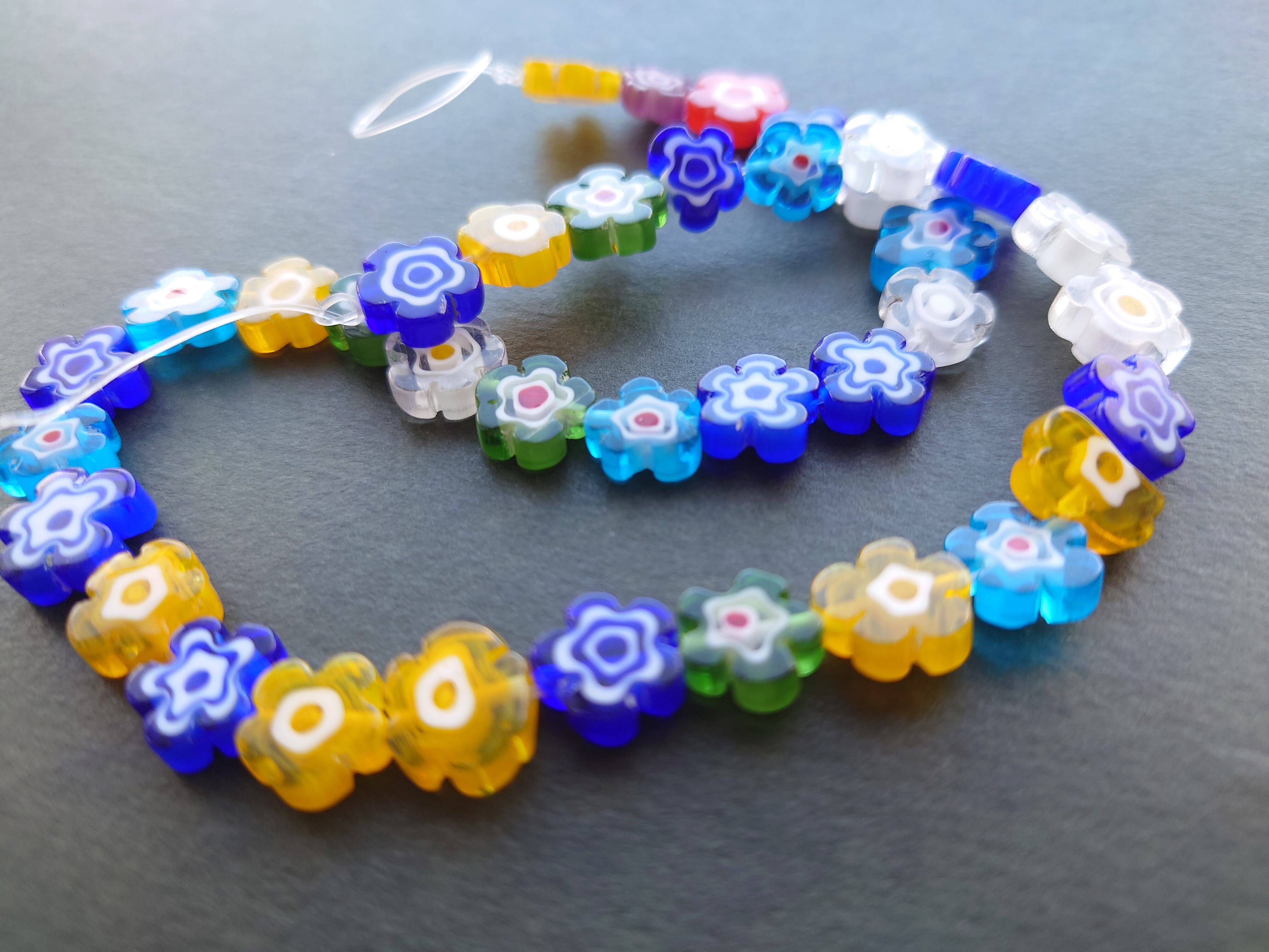 ミルフィオリ ガラス ビーズ フラワー ミックスカラー 1個