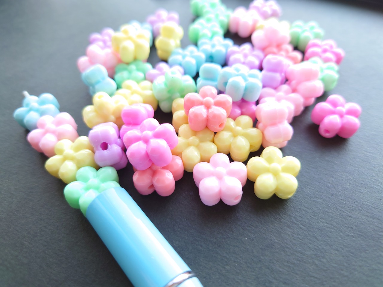 アクリル フラワー ビーズ ミックスカラー パステルカラー 10個