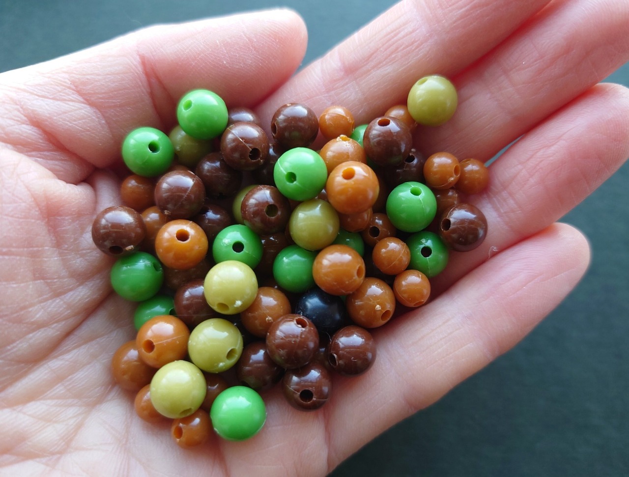 【値下げ在庫限り】ラウンド ビーズ サイズカラーミックス ブラウン ブラック グリーン プラスチック 30個