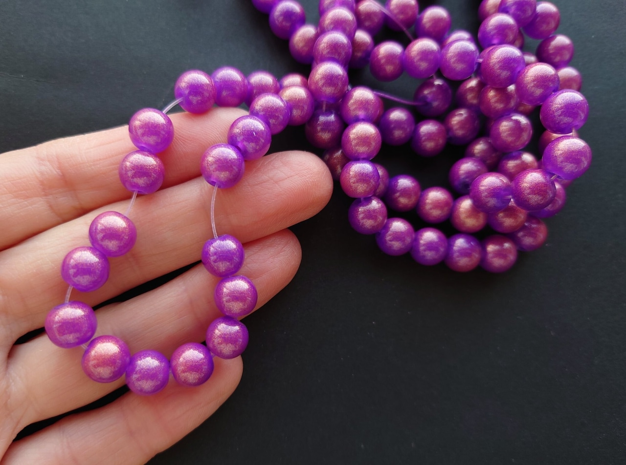 ガラス ラウンド ビーズ 8mm パープル グレー 20個