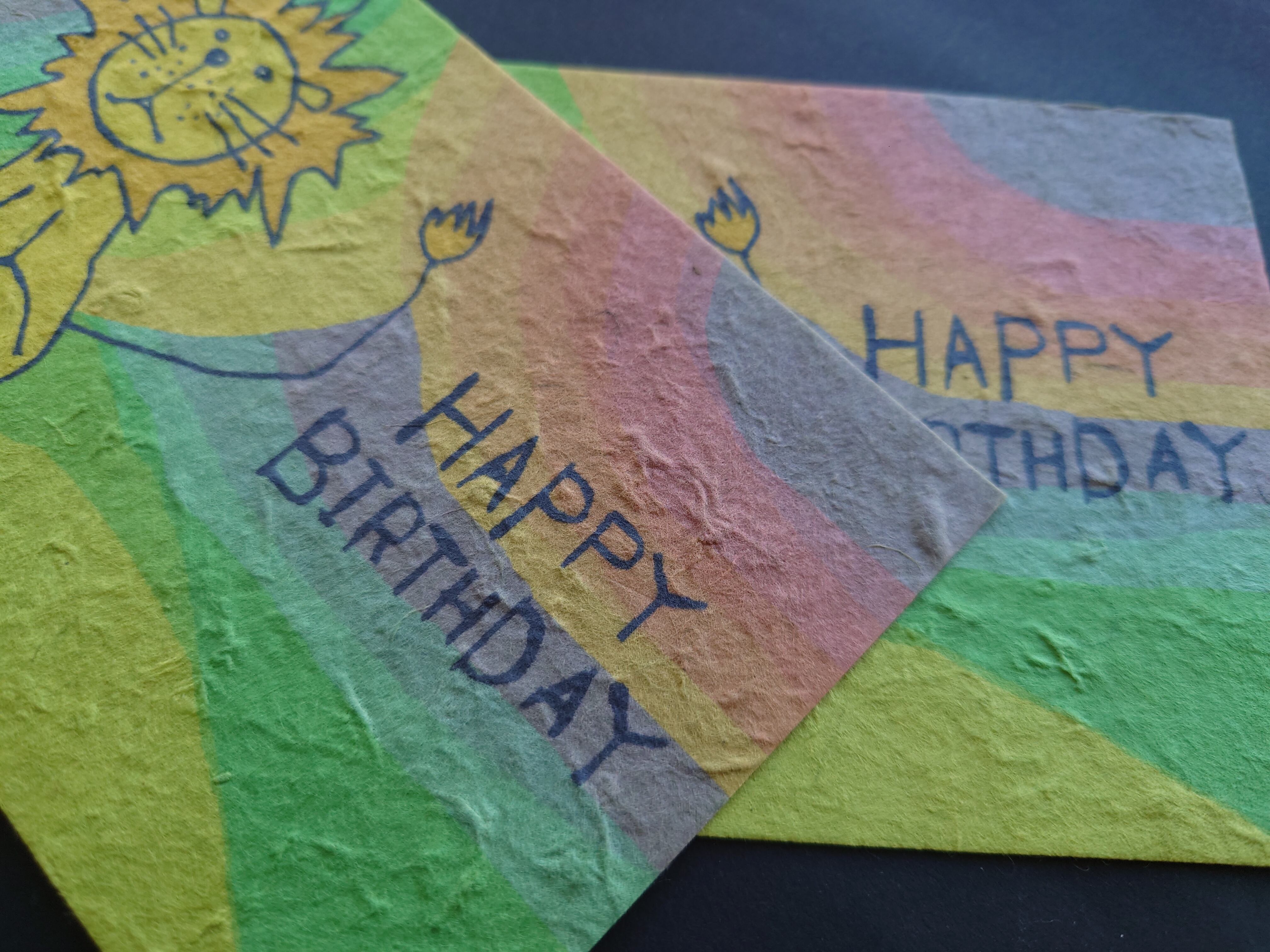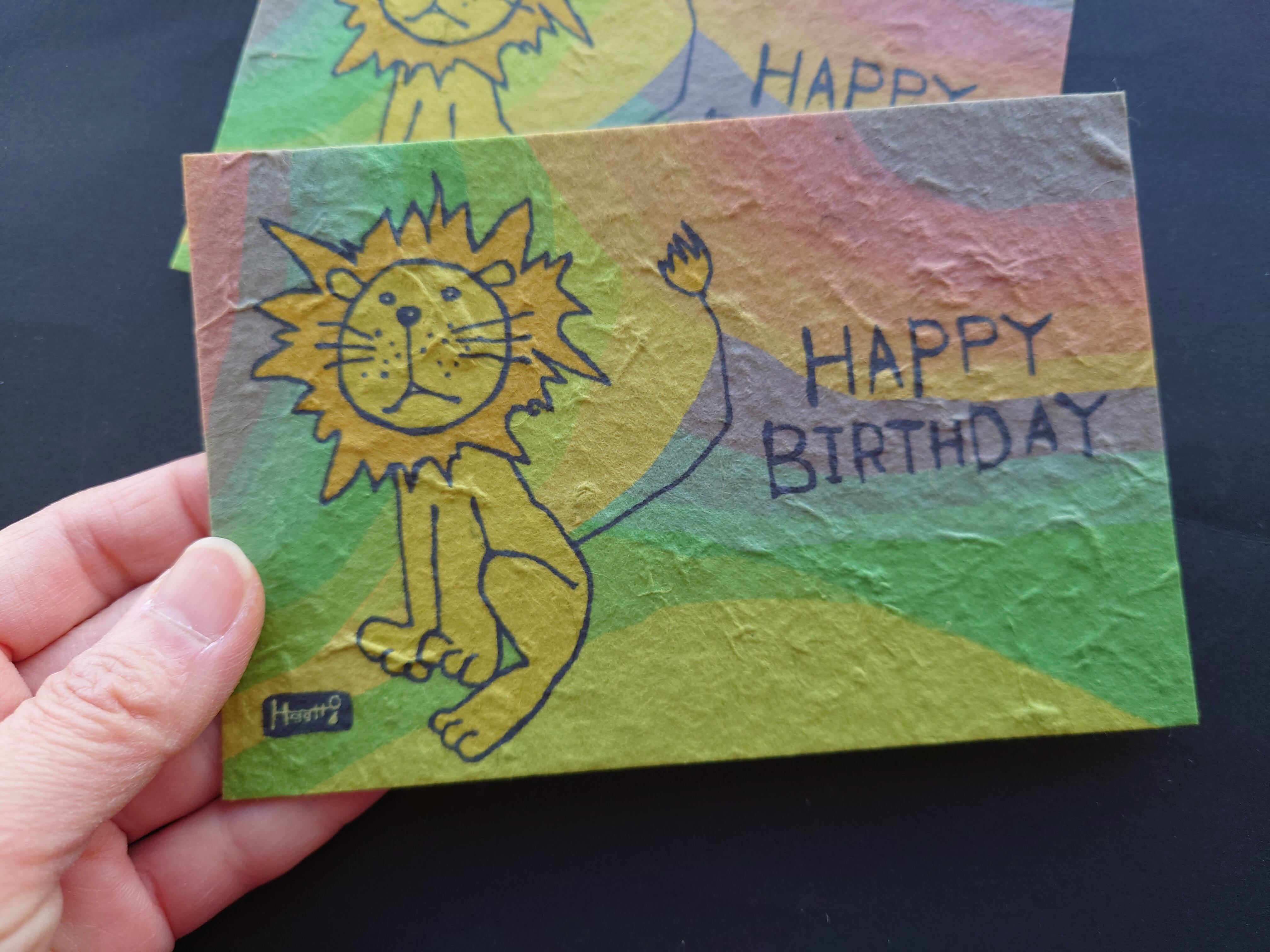 【在庫限り】和紙ポストカード バースデーカード ライオン レインボー 1枚